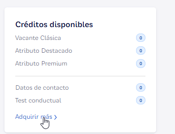 - Haz clic en “Adquirir más” para visualizar nuestros tipos de créditos disponibles.